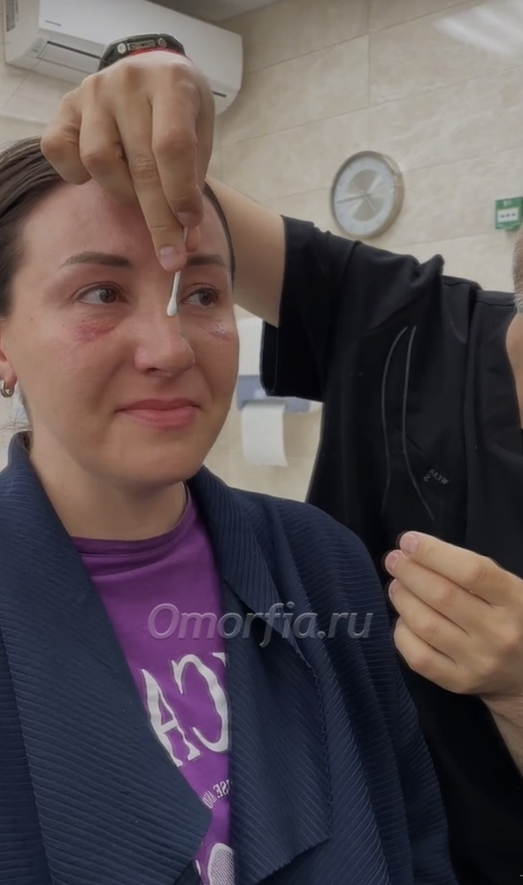 Отёк образовался возле носика, синячки проявились сильнее, стали темно-бордового цвета и опухли глаза.