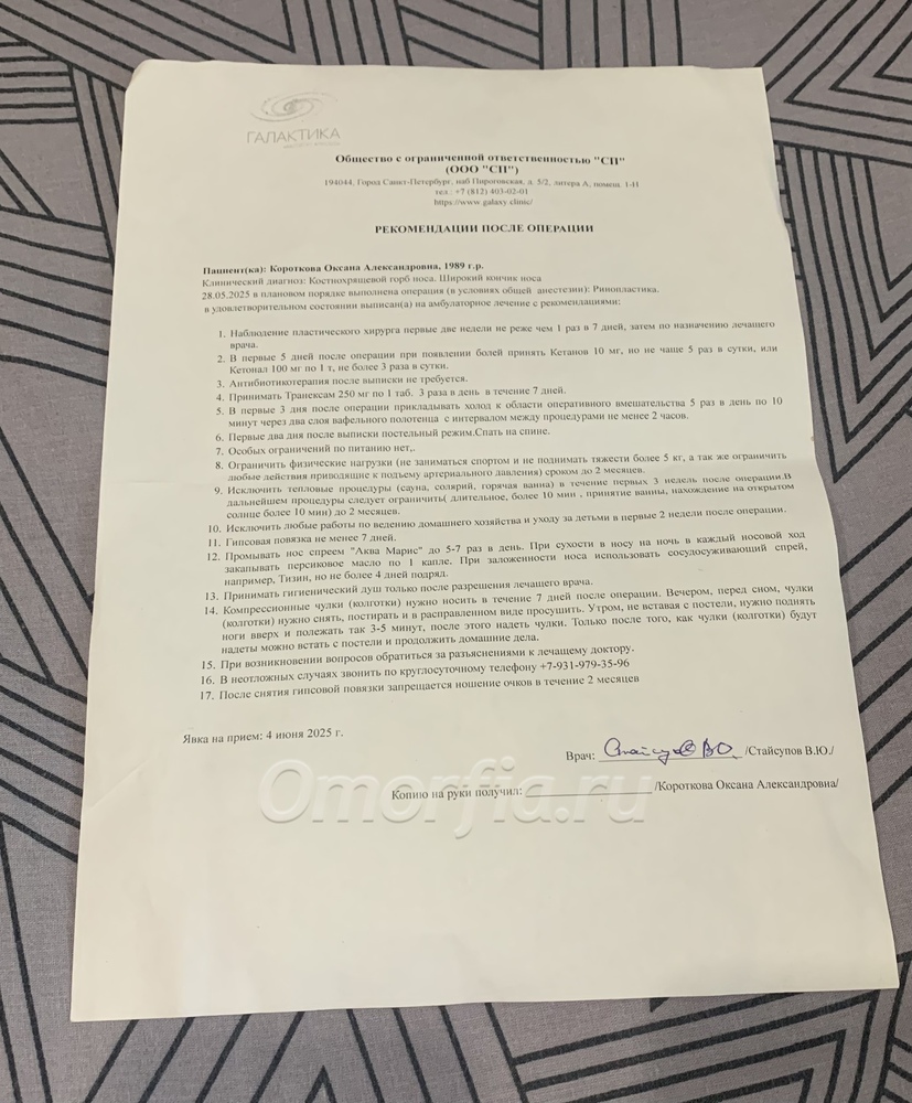 Не выспавшаяся, но очень счастливая, что моя мечта сбылась и мне сделали такой красивый и здоровый носик в самой лучшей клинике Санкт-Петербурга у высококвалифицированного доктора Валерия Юрьевича Стайсупова. Спасибо огромное, проекту Оморфии за такой дорогой подарок!🥰🙏 Я буду вам благодарна всю свою жизнь!🥰😍 Вы подарили мне возможность не только улучшить себя и свое здоровье, но и избавили меня от комплексов. Теперь я свободно могу фотографироваться в любых ракурсах, не боясь за то как у меня выглядит носик🥰😍 и у меня появилась огромная мотивация улучшать себя и дальше, в планах исправить неправильный прикус, чтобы лицо смотрелось ещё гармоничнее и прекраснее☺️ ну и через 2 месяца начну заниматься спортом, чтобы выглядеть ещё лучше.
