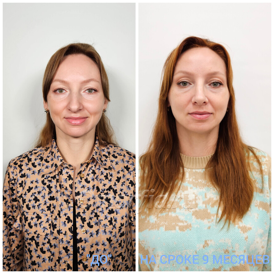 В финале приёма сделали фотографирование результата на данном этапе, коллаж "до" и на сроке 9 месяцев :