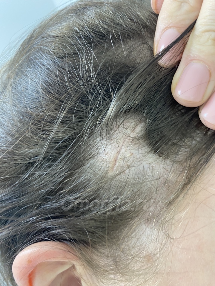 До сих пор промываю нос, капаю персиковое масло. В моей артилерии стабильно хлоргексидин, чтобы пройтись по разрезам в голове (уже там все аккуратненько и малозаметно). На фотографиях они все уже посветлели (с другой стороны также), только где шовчик от защипов чуть красноватый (там как луночка), но думаю это из за натяжения. потому что внутри все чистенько и болей нет.