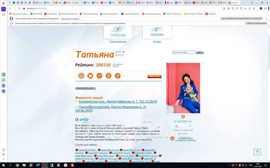 Когда я регистрировалась на проекте, думаю, как и многим девчонкам, мне было ничего не понятно и сложно, я не очень понимала правила и возможности этого проекта "Оморфия", но постепенно благодоря Иришке и другим девчонкам я разобралась, вникла и очень полюбила эту замечательную страну и всех ее жителей. В том числе и администраторов, докторов и сотрудников клиник "Галактика", видеооператоров, и всех всех всех. Вообще, это так приятно и немного неожиданно и даже не верится, что уже прошел целый год со дня регистрации, и когда осознаешь как быстро бежит время.