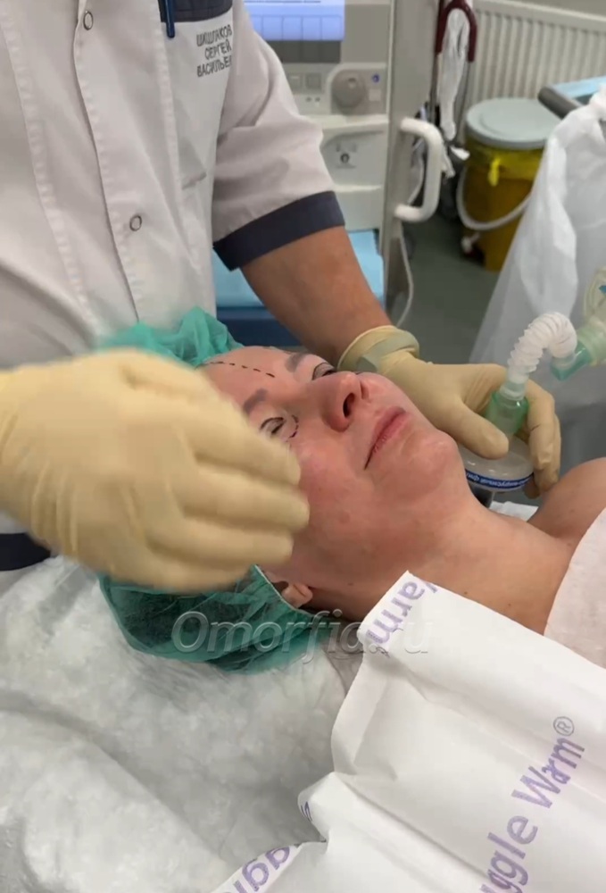 Итак, в рамках операции по периорбитопластике мне было проведено: верхняя блефаропастика, нижняя блефаропластика с разрезом по нижнему височному краю, и эндоскопическая подтяжка верхней трети лица.