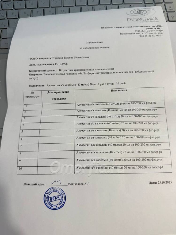 Итак, как и было велено администраторами клиники "Галактика" накануне, я прибыла в клинику заранее к 9 часам утра 25.10.2025.