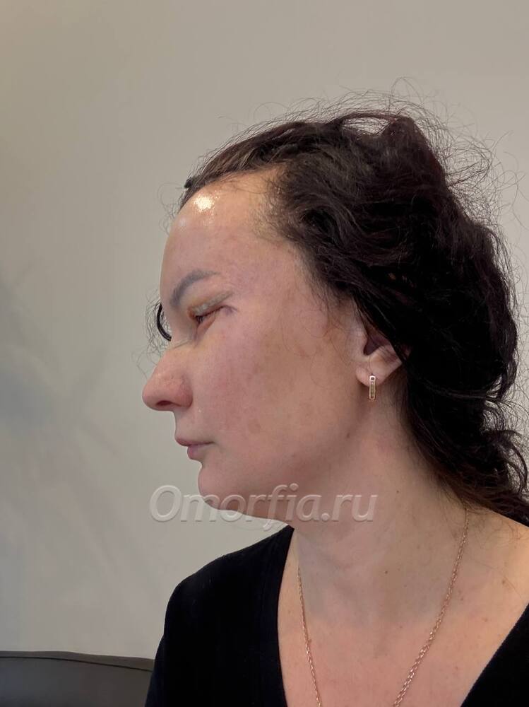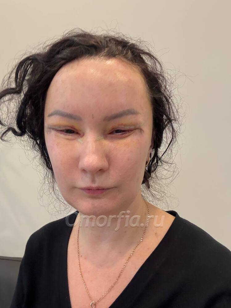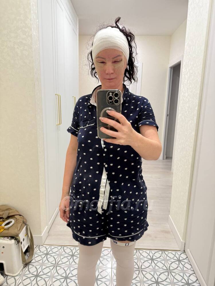 На третьи сутки у меня отек начал постепенно спадать именно с левой стороны, я даже смогла шевелить левой бровью. А справа остался очень большой отек, и я не чувствовала там ни бровь, ни вообще правую сторону. Но я уверена, что это все временно и обязательно придет в норму как положено в определенные сроки реабилитации. Забегая вперед скажу, что на следующий день на осмотре Александра Леонидовна сказала, что все проходт хорошо.
