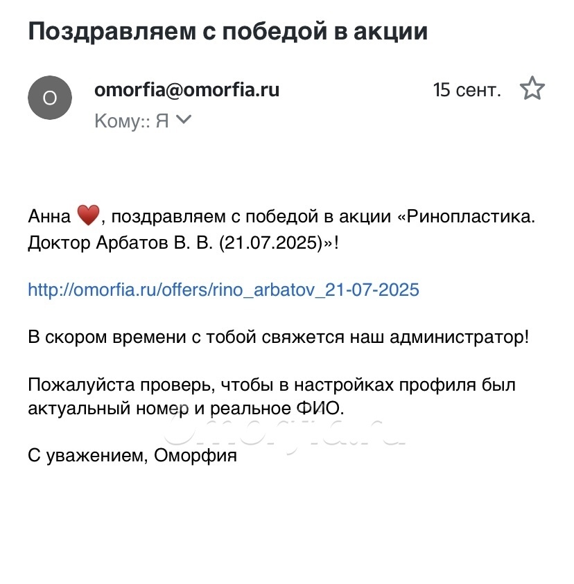 Дорогие друзья! Сегодня я хочу поделиться с вами одной из самых волнующих и долгожданных новостей в моей жизни. Свершилось то, о чем я так долго мечтала, к чему стремилась и в чем мне невероятно повезло! 🤩Я стала победительницей акции по ринопластике, организованной проектом "Оморфия" совместно с замечательным доктором Арбатовым Вячеславом Витальевичем!🥳❤️🔥