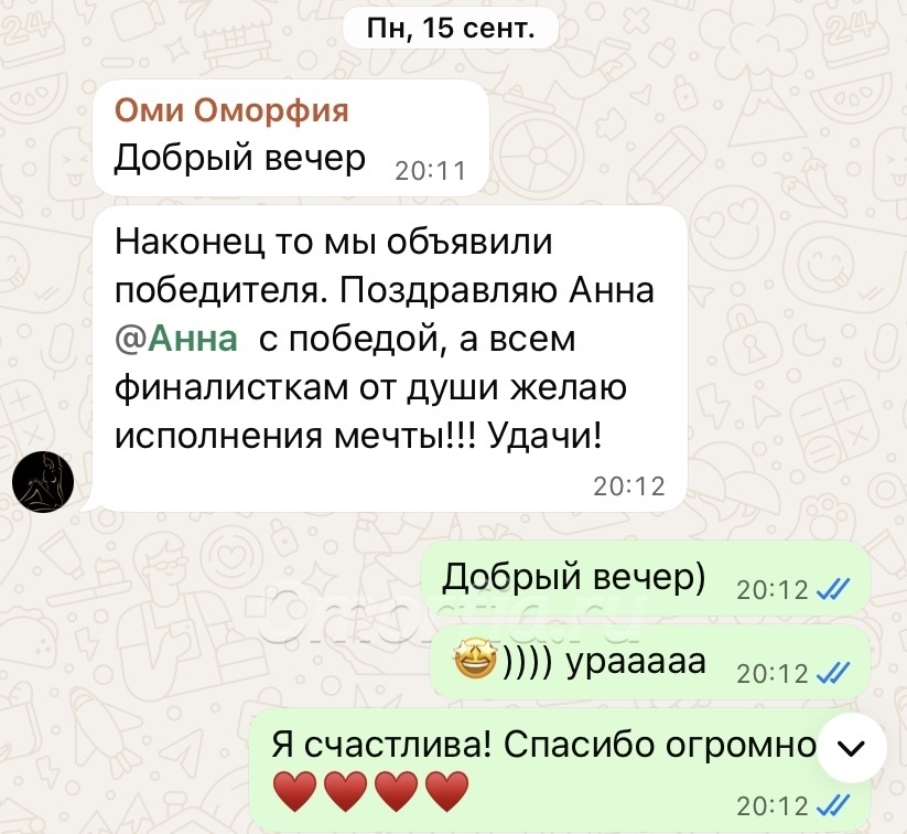 Когда я увидела анонс акции на проекте "Оморфия" с участием доктора Арбатова, моё сердце забилось сильнее. Это был настоящий шанс, который я просто никак не могла упустить! Я с головой погрузилась в процесс, стараясь максимально выполнить все условия проекта и доказать, почему именно мне должна улыбнуться удача! И вот настал тот самый день, когда я получила заветное уведомление: "Вы стали победительницей!". Это моя первая в жизни победа, и ощущения просто непередаваемые! Я была на седьмом небе от счастья! Трудно описать словами ту гамму эмоций, которая меня охватила: восторг переполнял, радость, улыбка не сходила с моего лица! Волнения перед предстоящей операцией у меня нет. Я осознанно иду по этому пути. И с огромным нетерпением жду преображения, зная, что это будет что-то невероятное!