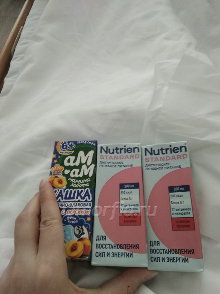 Пить воду и жидкое питание могу только через трубочку. Вот кстати как это питание выглядит. Вполне убирает голод.