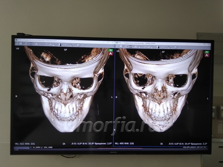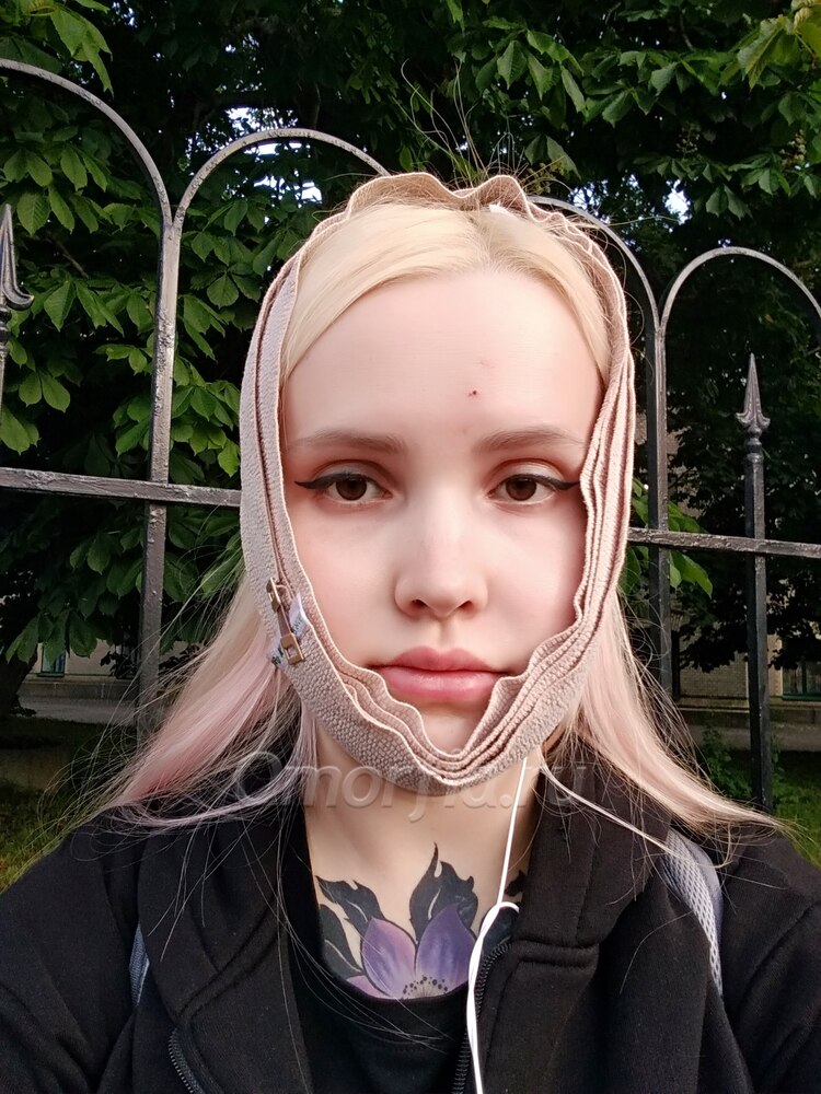 Всем привет. Расскажу про мои первые дни после операции и мою реабилитацию. Мою операцию провел Годин Григорий Вадимович. Все прошло успешно, я благодарю доктора за талантливую работу над моим новым лицом и умение услышать пациента, ведь это так важно. 😊Все прошло супер. Я представляла что проснусь с дикими болями, но их не было. Это меня очень радовало. Меня выписали из клиники на следующий день. У меня не было никаких болей, самочувствие было хорошее, потому я пошла гулять по Санкт-Петербургу. Наверное стоило бы просто отдыхать, но я была так счастлива, что не смогла бы просто сидеть в номере. На второй день отёк стал больше, о чем меня заранее предупредили, это нормально. Я просто знаю, что с новой формой челюсти все в порядке, так как я делала послеоперационный КТ черепа и уже видела на нем результат операции. Покажу эту разницу и Вам) Ведь отёк первых дней после операции не может показать всю картину, а КТ может. И так. Вот снимки.