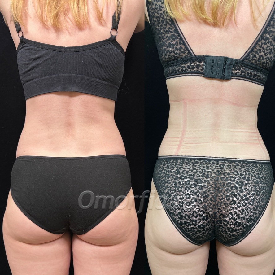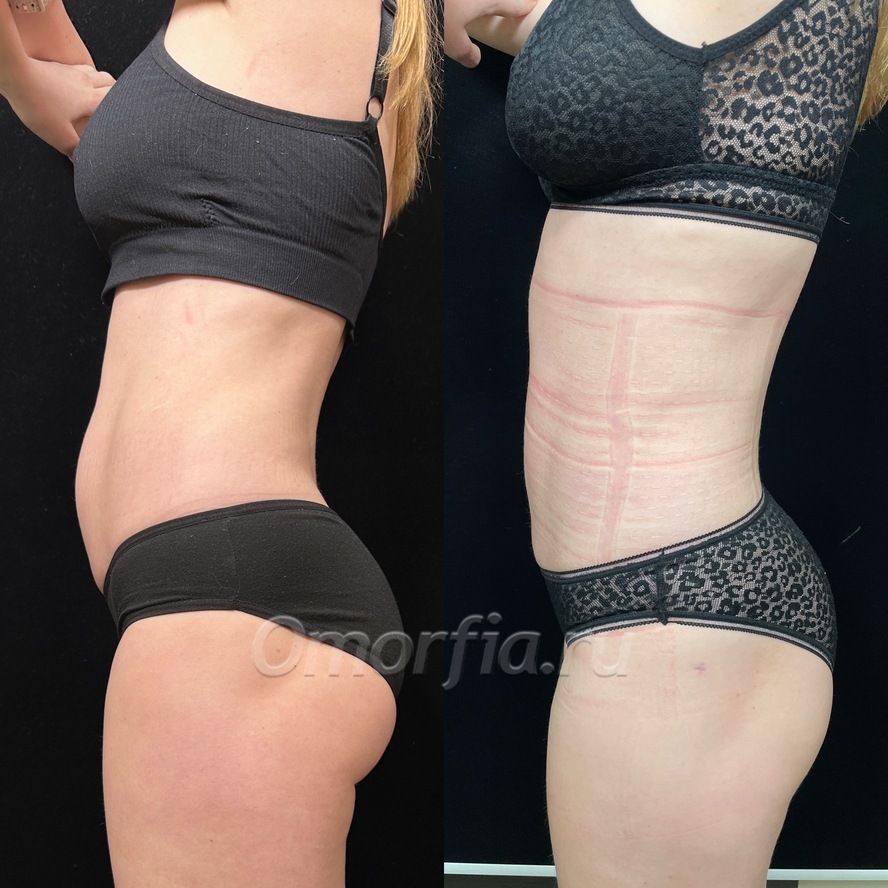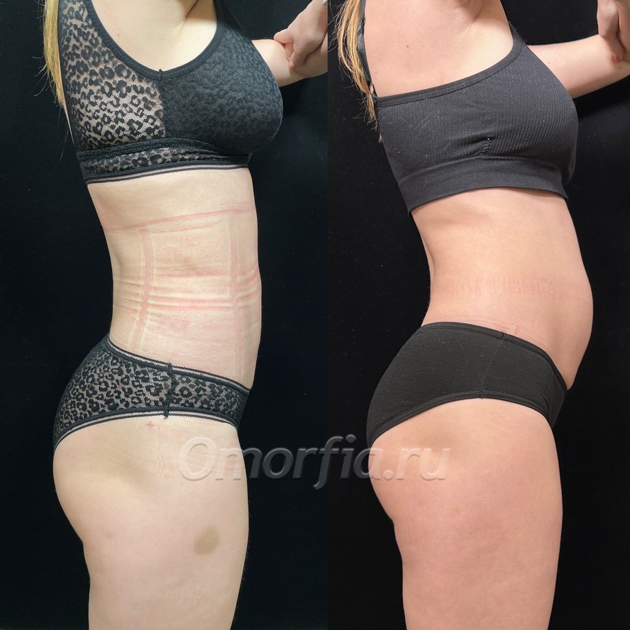 Небольшой отек сохраняться в месте талии, на боках и спине, там где самая толстая кожа. 😅 но и это скоро сойдет.