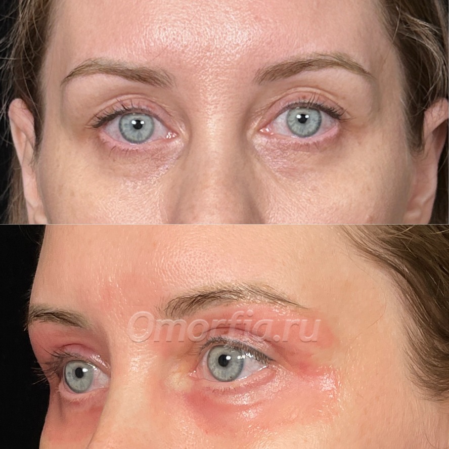 на данный момент есть отек под гдазамм на нижнем веке, т.к. 2 недели назад делали процедуру ботулонотоксии препаратом релатокс. Чтобы новые мимические морщинки не появились ни в каком случае.