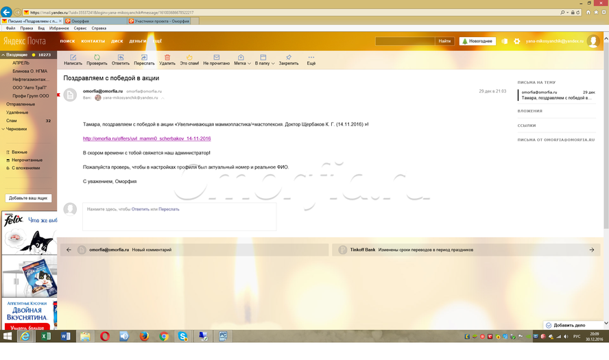 А теперь хочу Вам рассказать как я узнала о ПОБЕДЕ. Сегодня был у меня очень напряженный рабочий день, конец года много разных вопросов нужно решать по документам, акты сверок с контрагентами, договора, счета и т. д., много различных звонков и т.д. Я конечно же заходила проверяла главную страничку, но пока ничего так и не увидела. И вот поздно вечером я отработала и поехала домой. Дома пришла, переоделась, приняла вечерний туалет и решила просто немножечко перекусить. И тут мой телефон позвонил. Подняла трубку, а это звонила моя дочь Яна. ОНА мне и сказала: "МАМА ТЫ ПОБЕДИЛА В АКЦИИ, ТЫ ВИДЕЛА ЭТО?" Я стояла минуту и молчала!!! Такая НЕОЖИДАННАЯ НОВОСТЬ!!! НЕ ВЕРЮ СВОИМ УШАМ!!! И тут я стала радоваться, прыгать как маленькая девочка!!! ВОТ ЭТО ТАК ЭМОЦИИ? Я даже забыла о своей еде и обо всём на свете. Быстренько включила компьютер, зашла на главную страничку и увидела сообщение ОМИ.Теперь одним миллионером стало меньше, объявлен ПОБЕДИТЕЛЬ!!! А ниже ИРОЧКА меня поздравляет. Я быстренько стала искать свою страничку, смотрю а меня и нет уже на первой, я быстренько в акцию к Кириллу Геннадьевичу зашла. Потом заглянула и на свою страничку.