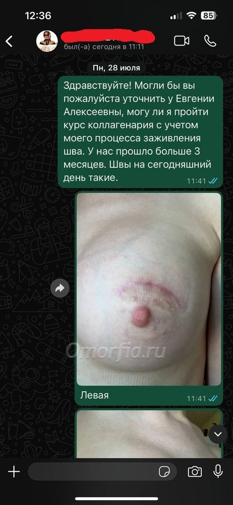5. Также мы обсудили возможность иссечения шва. Евгения Алексеевна выступила против такого решения проблемы и предложила вместо этого прибегнуть к лазерной коррекции — ориентировочно на сроке 8 месяцев. Я полностью с ней солидарна.