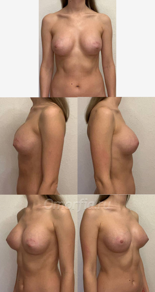 Импланты: mentor 300 cc круглые средней проекции. Доступ периареолярный (по ареоле - разрез сверху), установка под мышцу.
