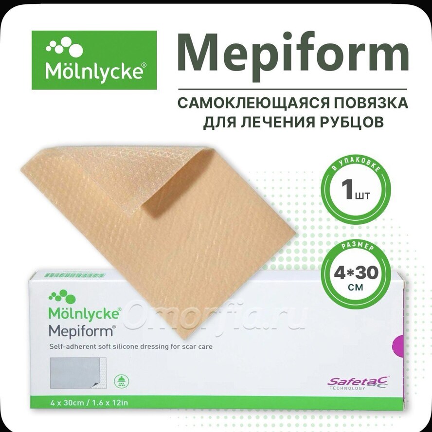 Врач рекомендовал носить пластырь Мепиформ (Mepiform) на одной груди в течение 1,5–2 месяцев. Я приобрела пластырь размером 4 × 30 см. Его следует наклеивать и носить круглосуточно до 14 дней, не снимая во время приёма ванны или душа.