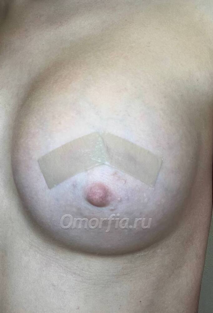 4. Мы обсудили состояние швов. Правая грудь — без нареканий. На левой груди шов стал выпирать над поверхностью кожи: наблюдается гипертрофический рубец (келоид). При этом на сроке 2,5 месяца после операции шов, напротив, даже западал относительно поверхности кожи на этой груди. Вот такие метаморфозы.