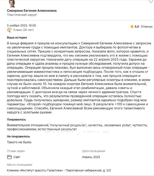Напомню, что 22.04.2025 в стенах Петербургской Галактики состоялась моя операция по увеличивающей маммопластике у замечательного пластического хирурга Сивериной Евгении Алексеевны .