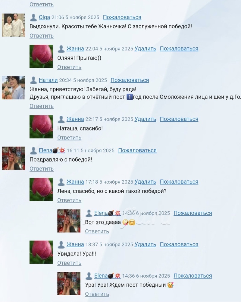 Как-то неожиданно через 4 дня после дня рождения на моей странице на сайте появилось поздравление с победой от участницы проекта Елены и я подумала, что девушка ошиблась, победитель то еще не об'явлен. Чуть позже появилось еще сообщение от Ольги и других участниц.