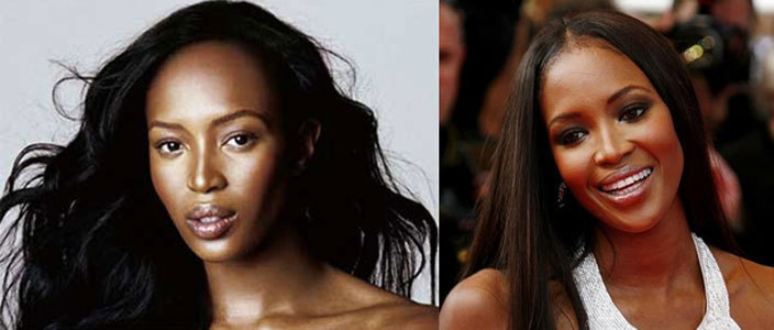 Супермодель Наоми Кэмпбелл считает, что она не нуждается в пластической операции. В одном из своих интервью она сказала: «Я сыта по горло сплетнями о перенесенных мною пластических операциях.» На вопрос о перспективе хирургического вмешательствах, супермодель ответила, что никогда не воспользуется услугами пластических хирургов, если только не попадет в серьезную аварию.