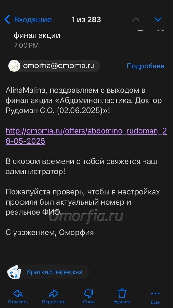 О выходе в финал я узнала вечером 2 июня, проверяя почту, где меня ждала приятная новость!